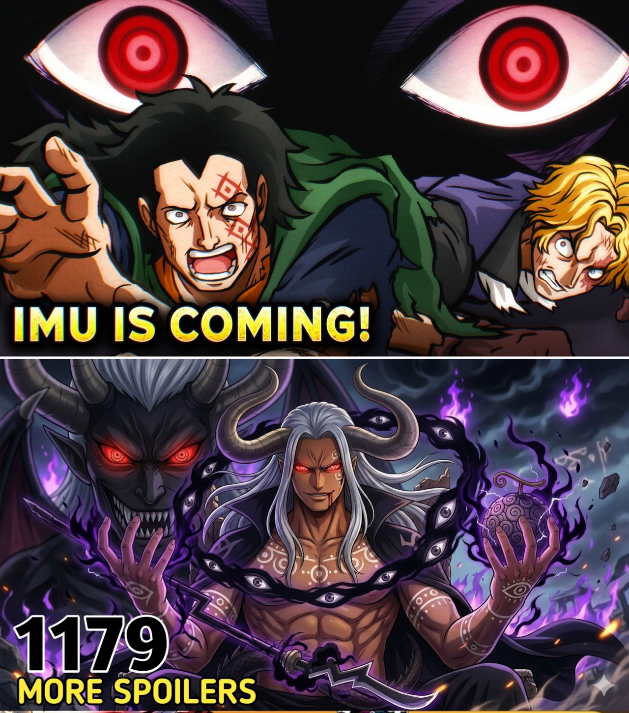 He is officially identified as Saint Nerona Imu, one of the original Twenty Founders who established the World Government 800 years ago. His design is a chilling blend of divine and demonic: curved horns reminiscent of the Elbaph legend of Loki, a “devil’s tail” (the same one that pierced Sabo in Mary Geoise), and a black “hagoromo” cloud scarf adorned with biblically accurate eyes.