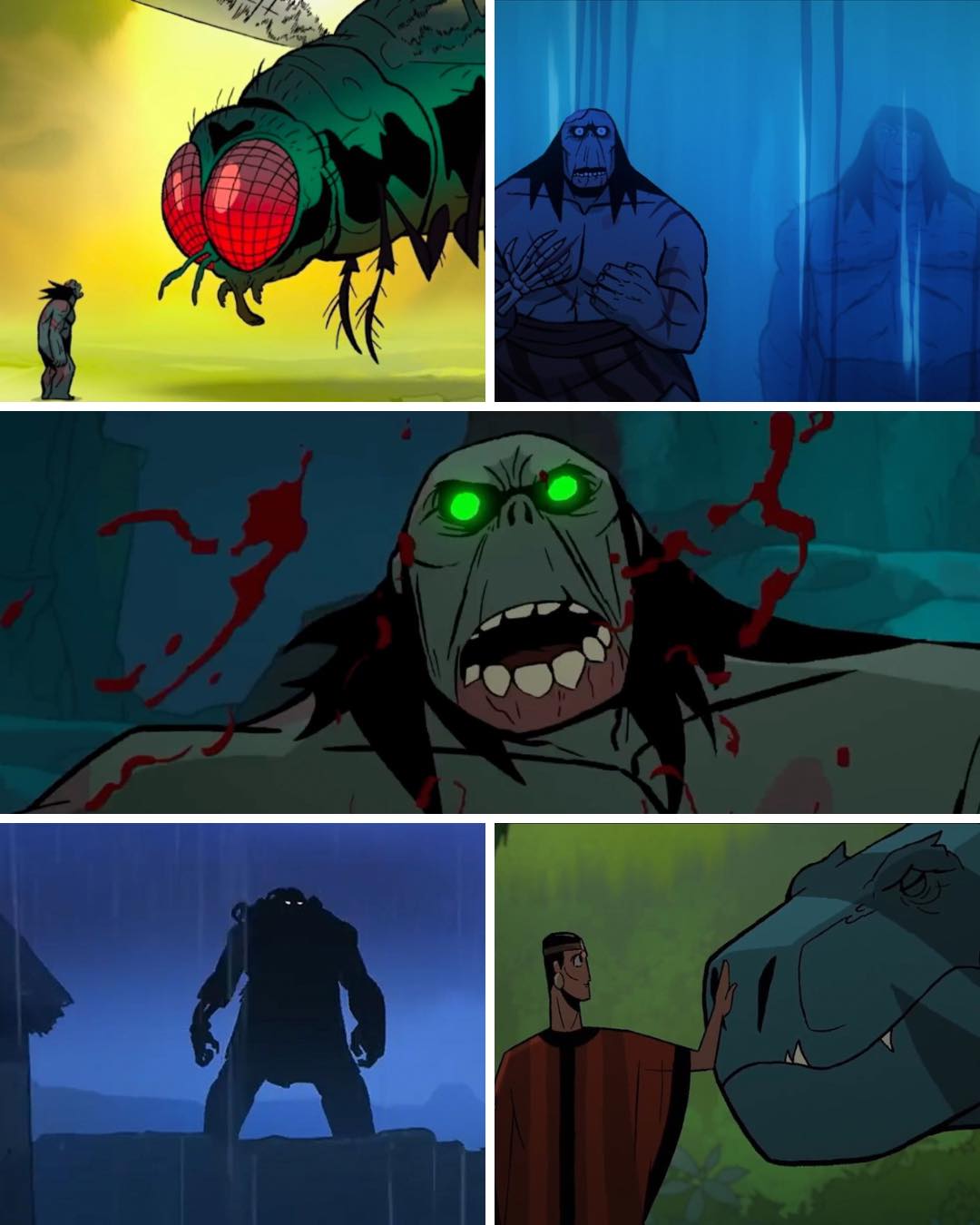 Tartakovsky’s style—fluid action, expressive silhouettes, atmospheric lighting—elevates the horror. Episodes demand full attention; details in backgrounds and creature designs reward close viewing. The lack of dialogue forces viewers to interpret emotions through facial expressions, body language, and music, heightening immersion. Composer Tyler Bates’ score, blending tribal percussion with eerie tones, amplifies tension.