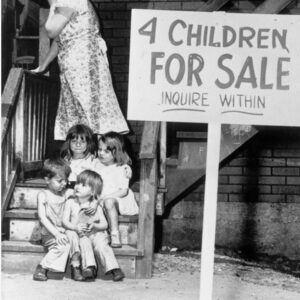 “4 Children For Sale, Inquire Within” A 1948 Chicago newspaper ran this photo of a mom hiding her face while her kids stared…